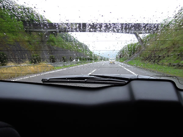 ハウステンボスから、由布院にレンタカーで移動しました。雨です。