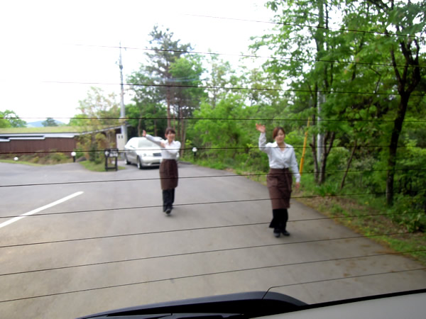 いろいろお世話をしていただいた、若い女性スタッフが手を振って見送ってくれました。
