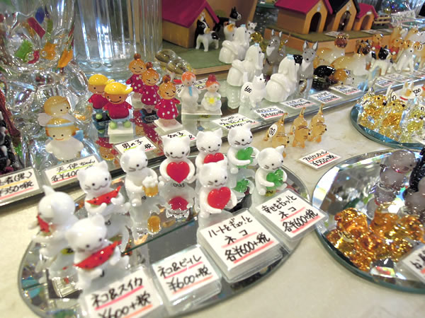 金鱗湖からぶらぶらとお店を巡りました。写真のネコ&ビールのガラスの置物に愛着を感じたのでおみやげに。