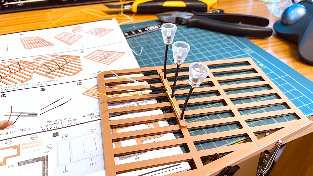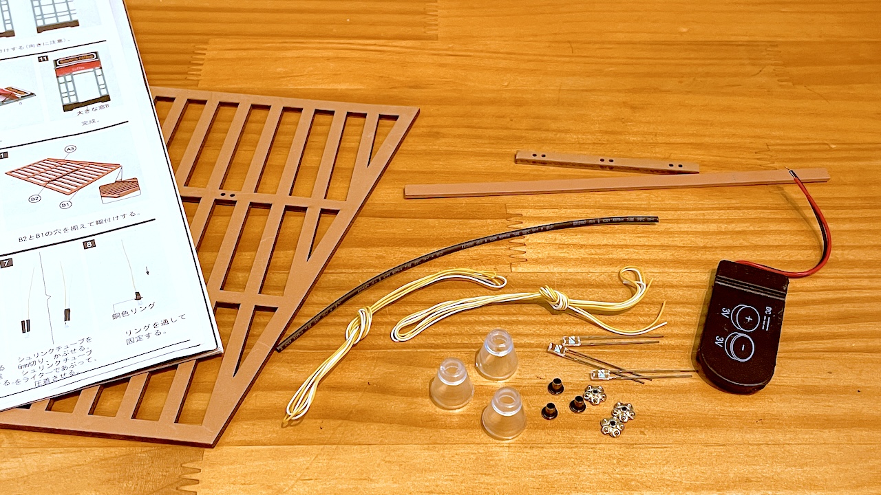 これら写真の材料を使いますが、LEDライトを使うようですね。