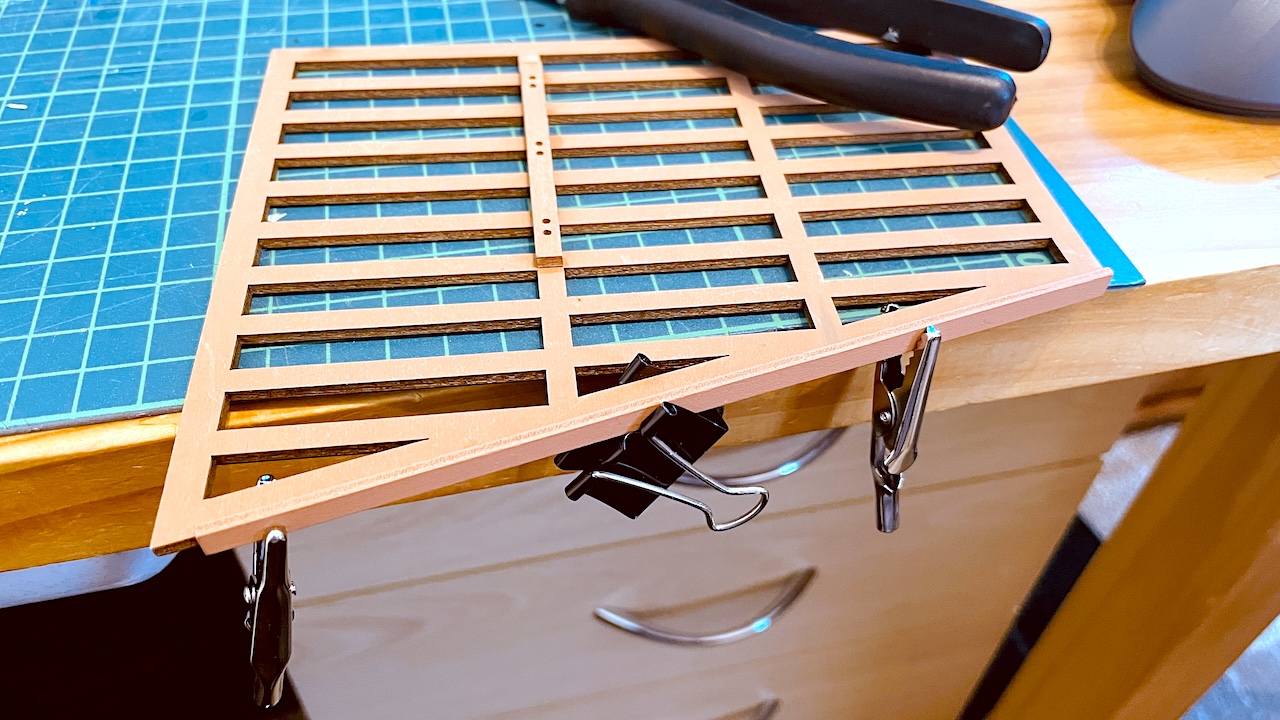 説明にはないですが、コーナーの配線を隠すために、角材を加工して接着しました。