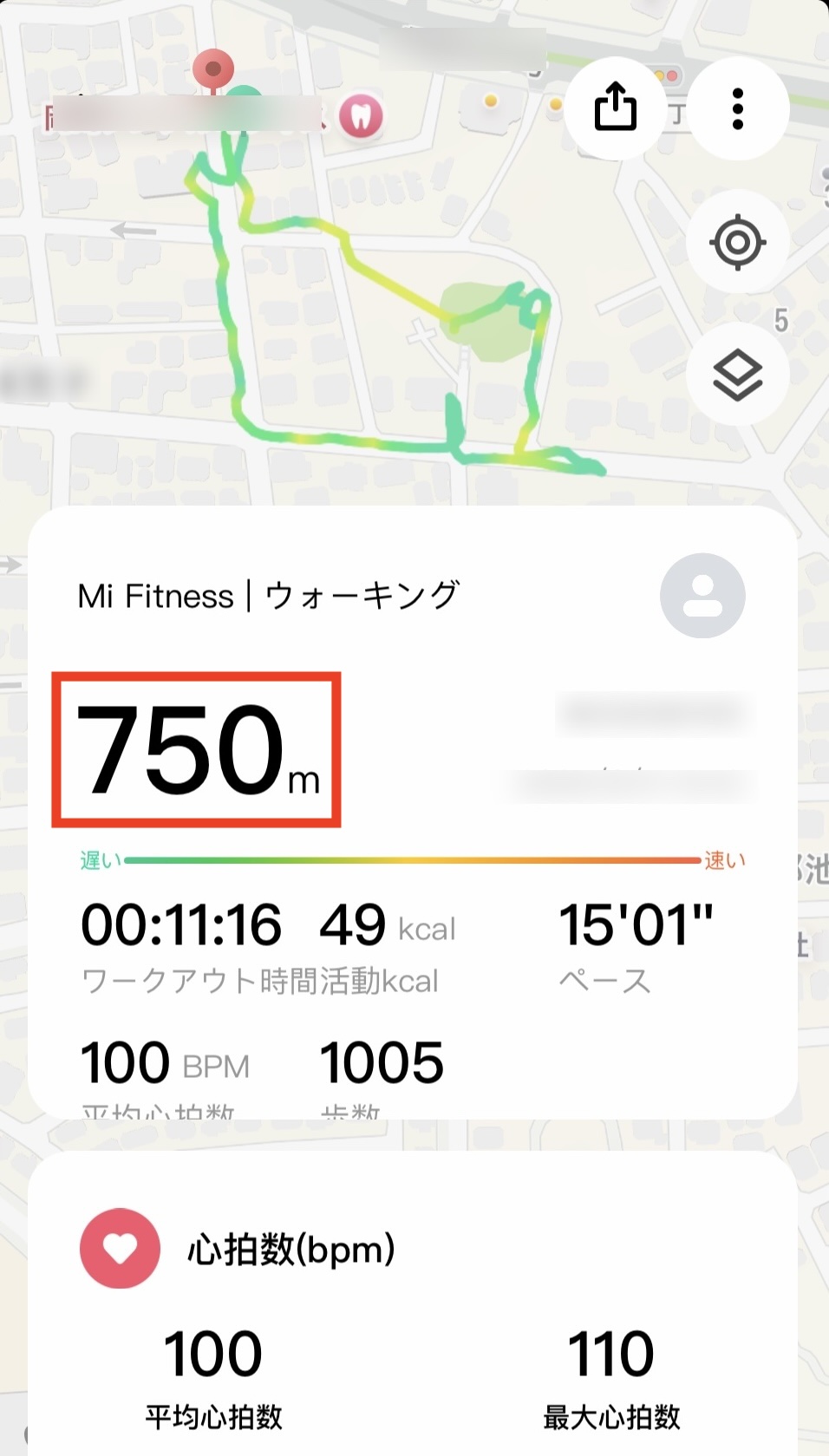 今日は初日なので距離はあえて短くして、たったの750mでしたが、明日から短い距離で始めて、少しずつ距離を増やしていこうと思います。