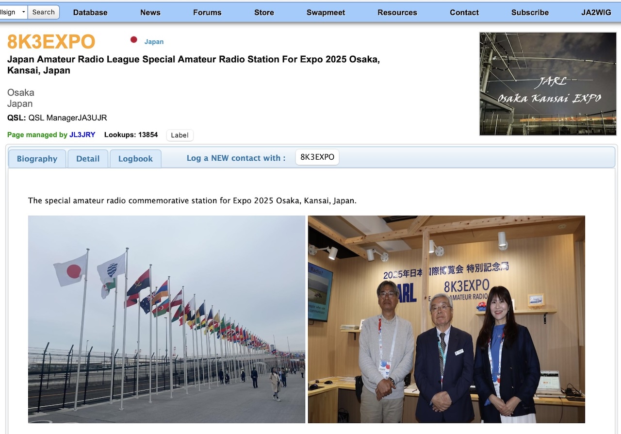しかも、それほど強い信号じゃないんです。そこで注意深くワッチすると「8K3EXPO」でした。おぉ〜、なんと大阪・関西 万博記念局ぢゃないか (°д°)