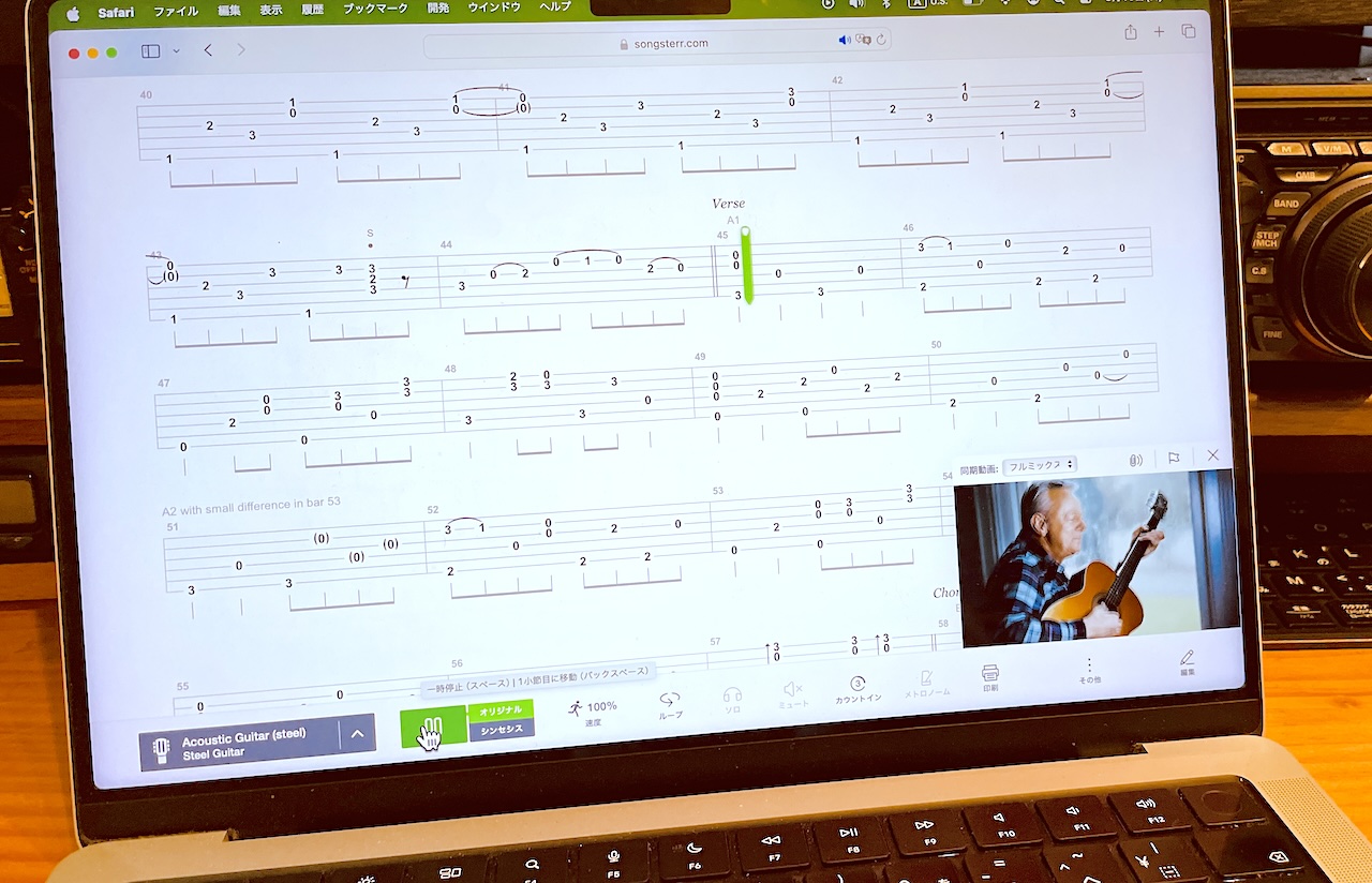 まずはいつものように、動画と楽譜を見ながらイメージトレーニングを繰り返します。いきなりギターを持って弾くことはしません。何回も繰り返し聴いて観てを繰り返します。