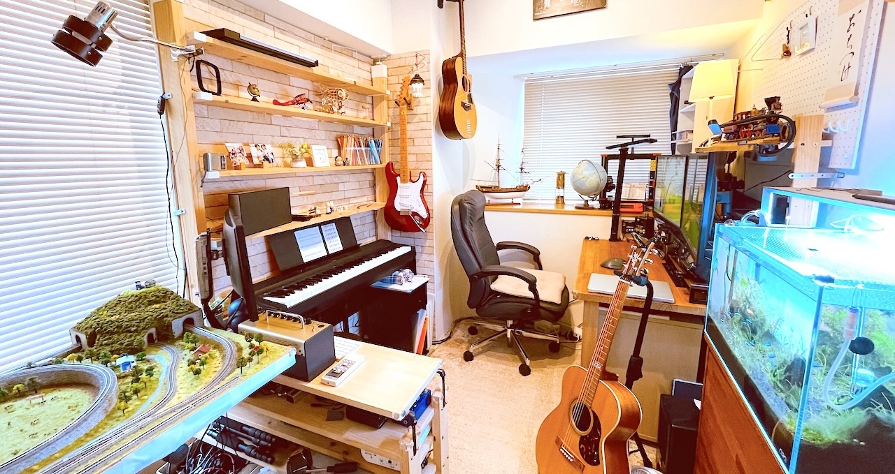 この部屋にある鉄道模型で遊んだり、熱帯魚の水槽を見たり、魚たちに餌をやったり、ピアノを弾いたり、YouTubeでアニメを観たりと⋯⋯。