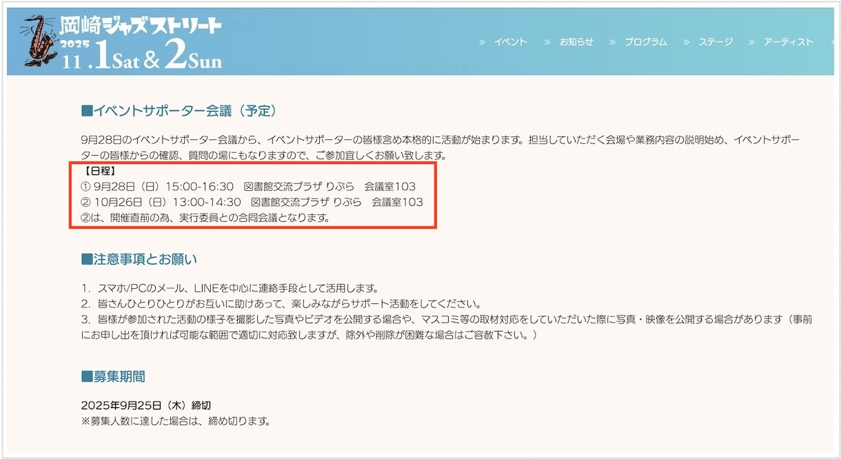 ⚫︎ 6月23日に「岡崎ジャズストリートのスタッフに応募した」で応募して