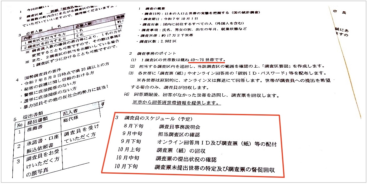 来月9月16日から国勢調査の仕事が始まり、10月いっぱいまでの長い期間⋯⋯ のようですが、じつは集中して事に当たれば、実質10日ほどかなと思っています。