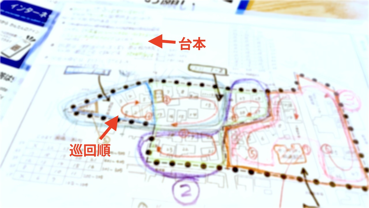 さらに訪問時に「どういう順に説明したら良いかの台本」もメモしました。ぼくはしゃべりが得意ではないので、これがないと不安なんですね。