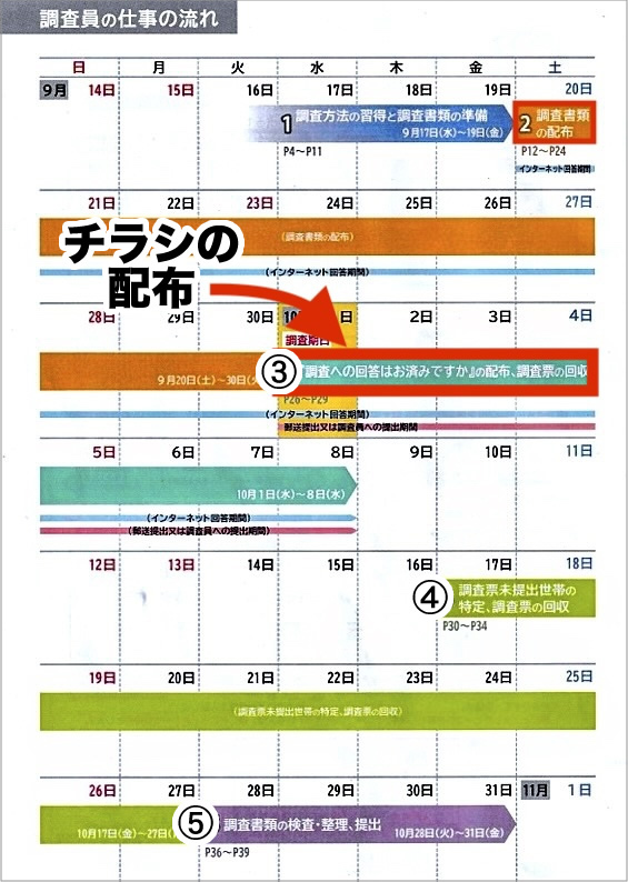 そして、まだまだこの先、④未提出世帯特定〜調査票回収 ⑤調査書類の検査、整理〜提出が10月の末まで続きます。