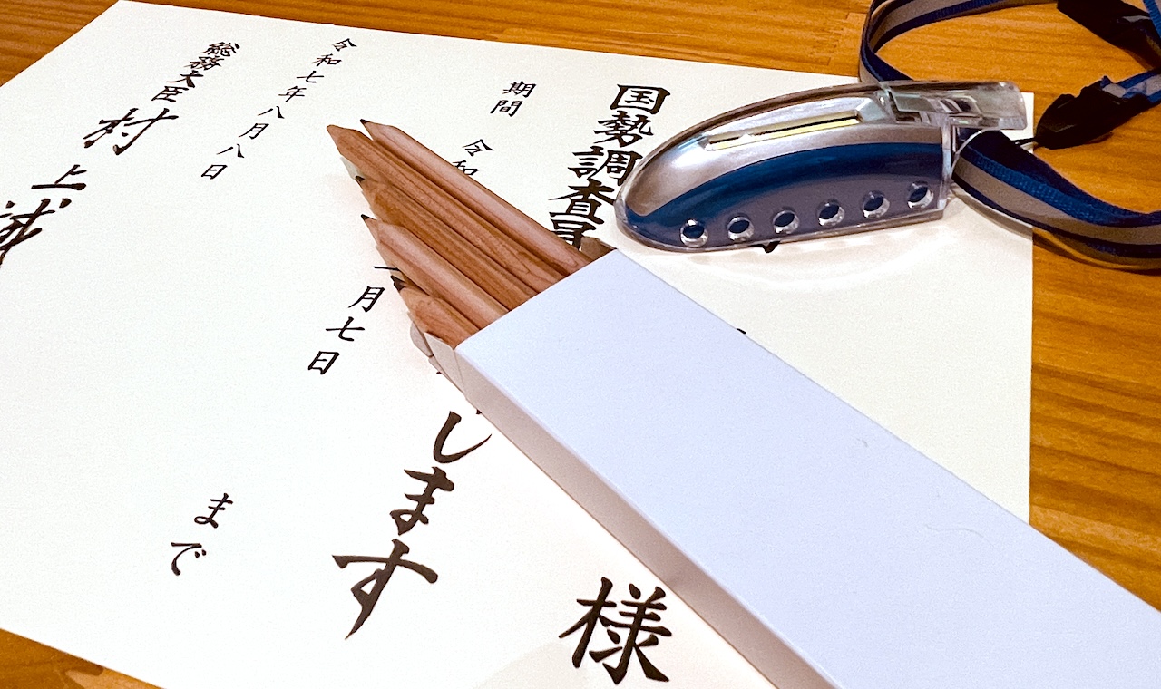 ちなみに記念に置いていきますと言われたのが、この「国勢調査員任命書」と筆記具と防犯ホイッスルでした。中には思い出したくないと、任命書も返す人がいたそうです。笑
