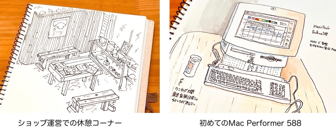 これはスケッチブックに、ササ〜っとショップ内や自分の部屋の中を描いた絵です。