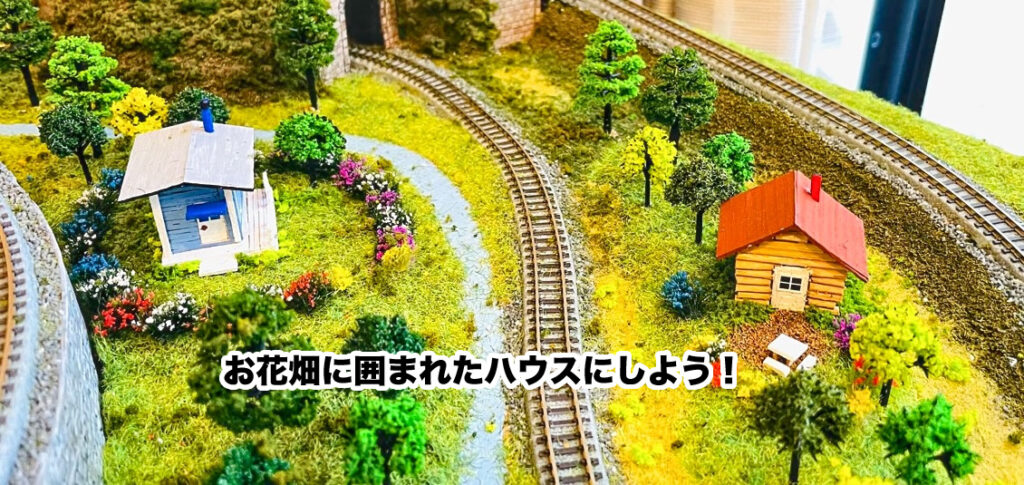 それと、この鉄道模型のように周りに、芝生とお花畑も作ろうと思っています。材料の在庫たたくさんあるので、どんなふうになっていくか楽しみです!