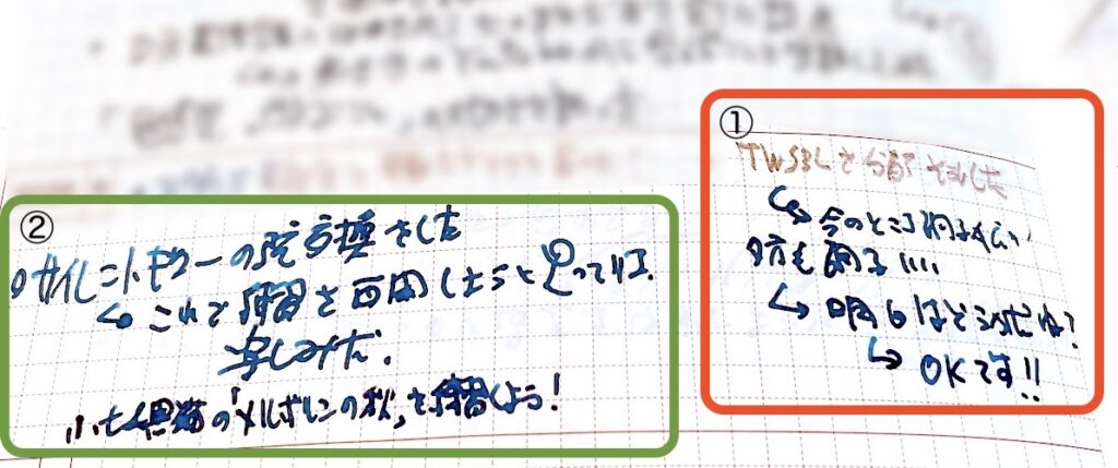 そして左には「 ② サイレントギターの弦交換をした → これで練習を再開しようと思っている。楽しみだ」と書いてありますよね。