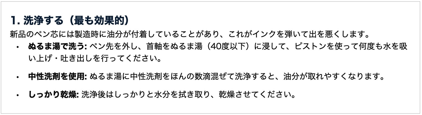 ちょっと待てよ、やめるのは簡単だけどと思い、いつものようにAIさんに「TWISBI インクの出が悪い」で聞いてみることにしました。