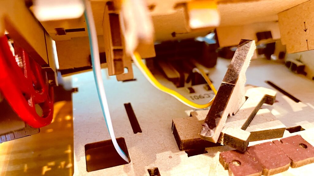 仕方がないのでやり直すしかありません。再び一階部分をバラして、床下をみると配線が遠回りしていたのです。