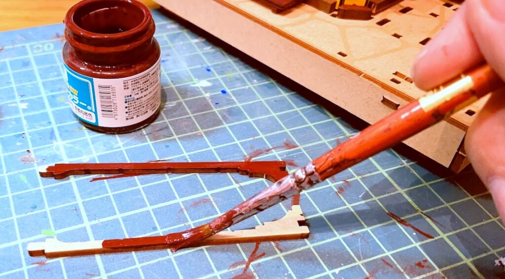 こうやってパーツ一つひとつに「どの色にしようか?」と考えながら、真剣に塗ります。それに何色にしようか考えながら作るのは、脳の老化防止になりますよね。笑