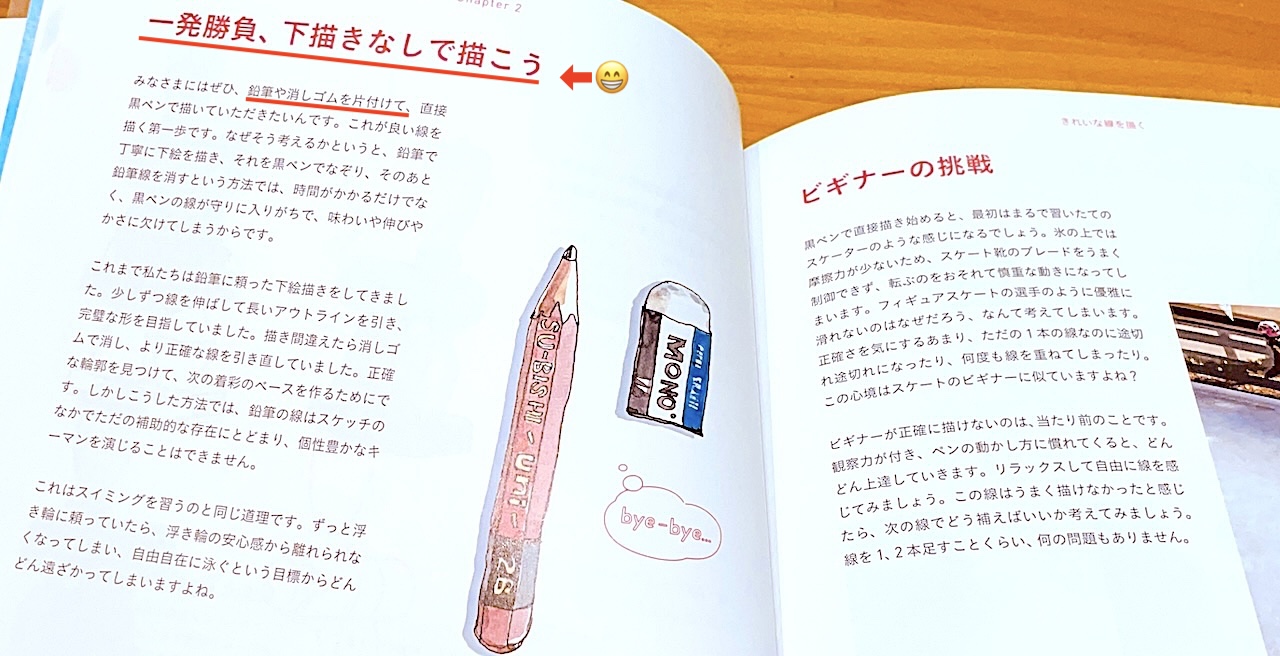 そして3冊買った本の中から「シンプル・スケッチライフ」を教科書にすることにしました。その決め手になったのが「一発勝負、下書きなしで描こう」という説明です。