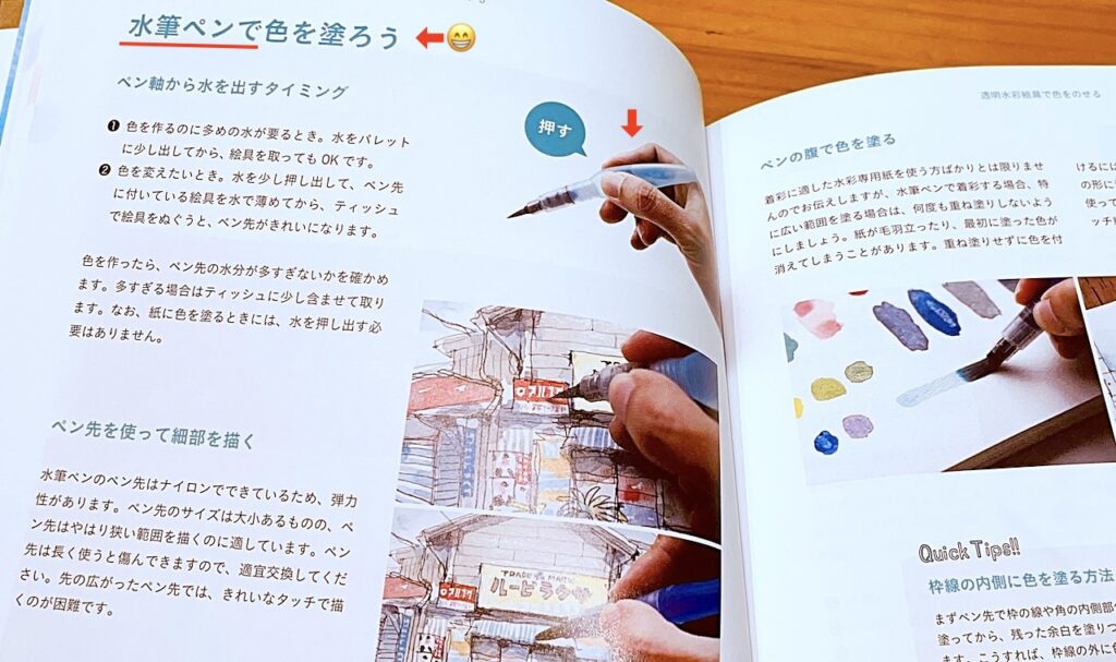 そして「水筆ペン」で色を塗ろう!と書かれていますが、これはいずれ自分で好みの筆を使うことになると思いますが、とりあえず水筆ペンを使ってみましょう。