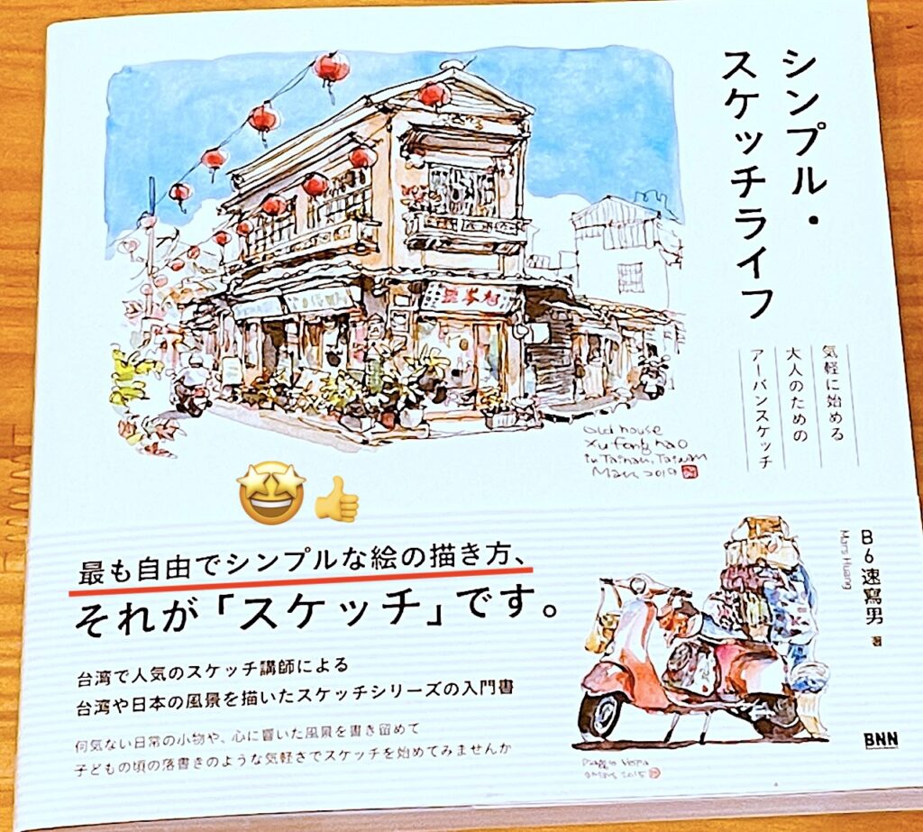繰り返しますが、今回ぼくがスケッチ画を始めるのに使った教科書は「シンプル・スケッチライフ」という写真の真ん中の本です。
