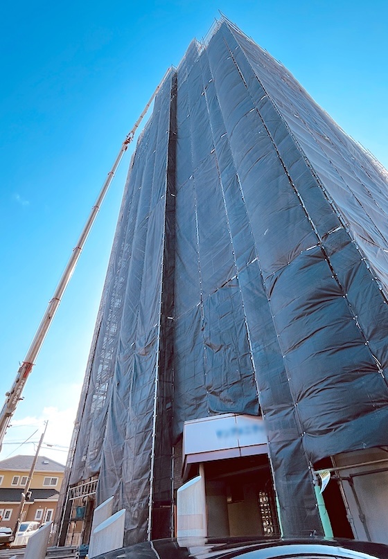 しかも周りは足場が組まれています。(◞‸◟ㆀ)