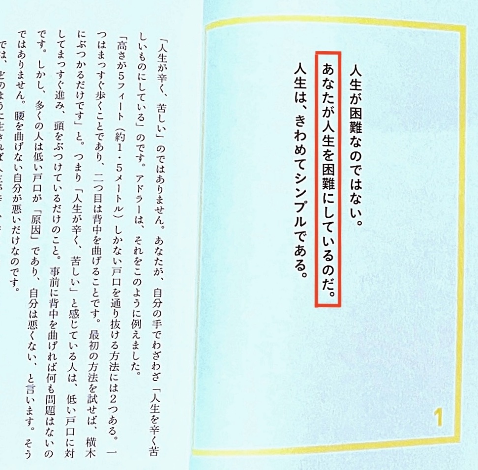 先ほど書いたことで、まだ解決法が見つからないときに「そういえば若い頃にこの本を読んだな」と思い出しました。そのときは「アドラーの心理学入門」でした。